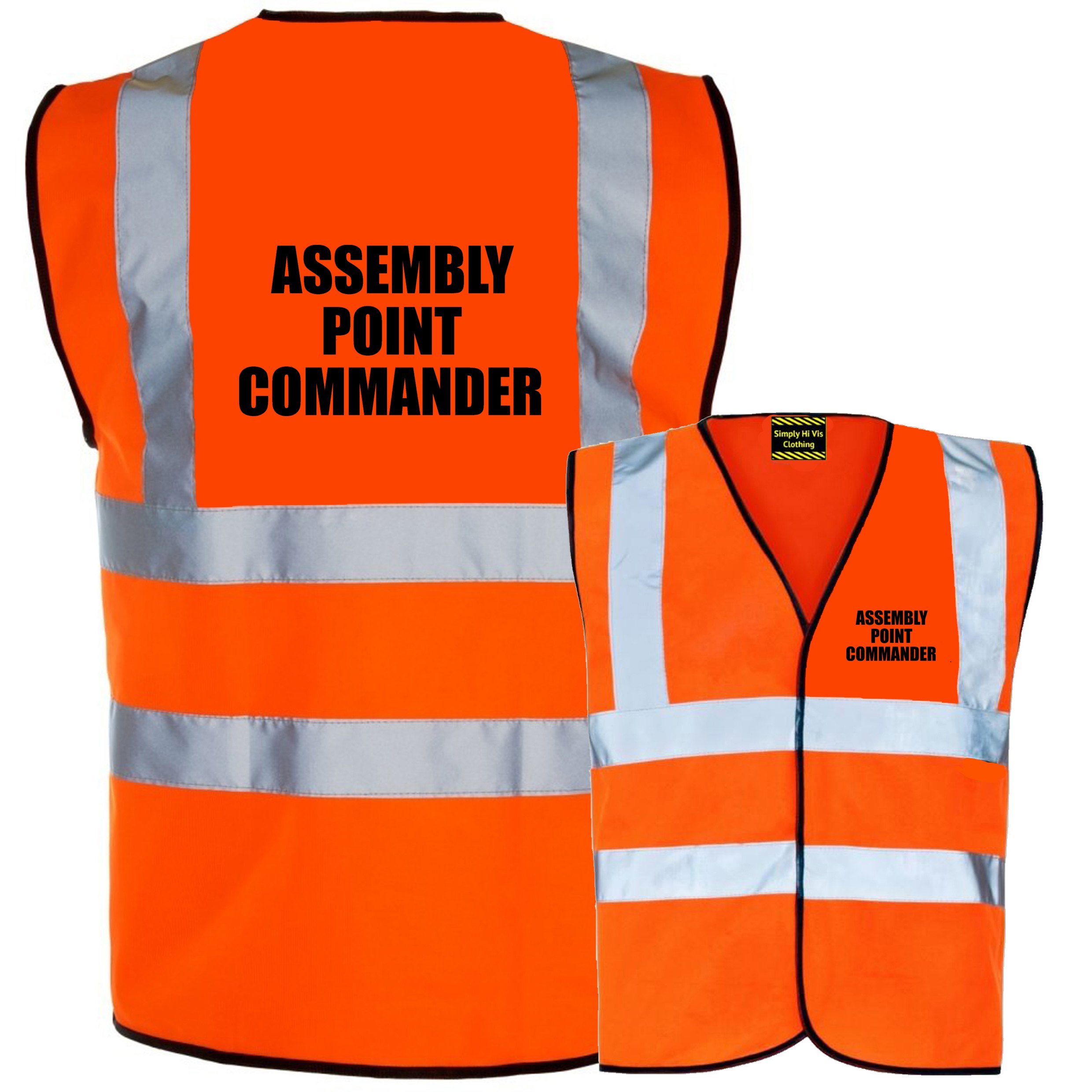 Assembly Point Commander Pre Printed Hi Vis Safety Vest/Waistcoat Add Custom Print Logo / Text