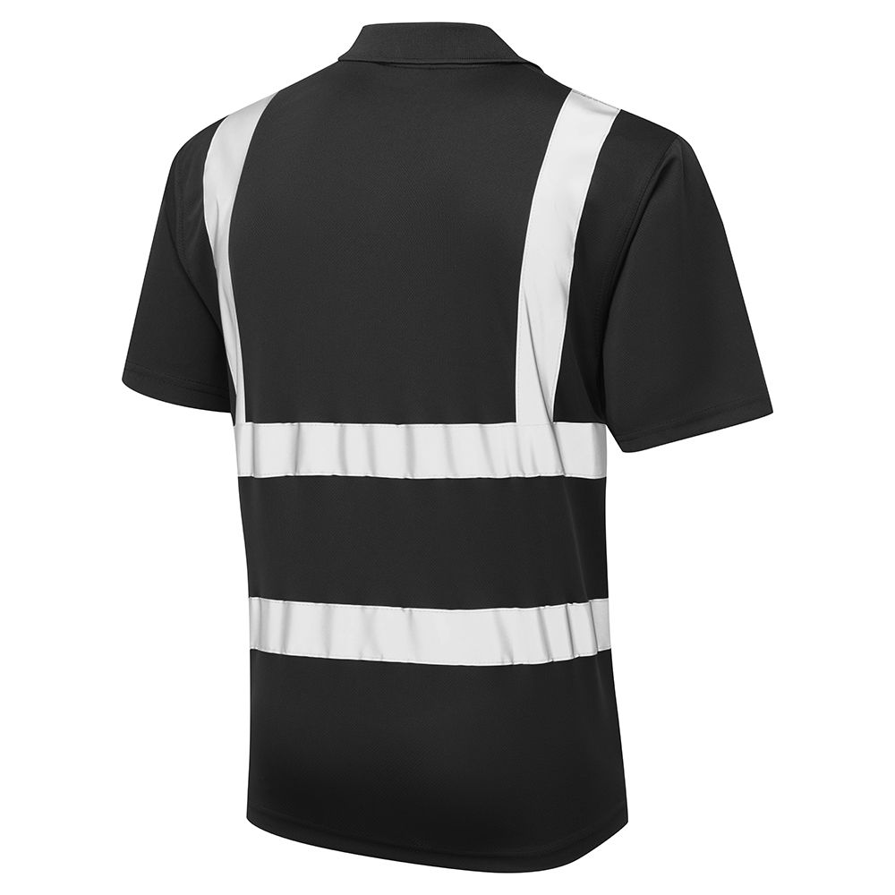 Our Bird Eye Black Polo Shirt with hi vis reflective tape. With a UPF rating of 40+, this versatile polo shirt is great for a variety of activities.