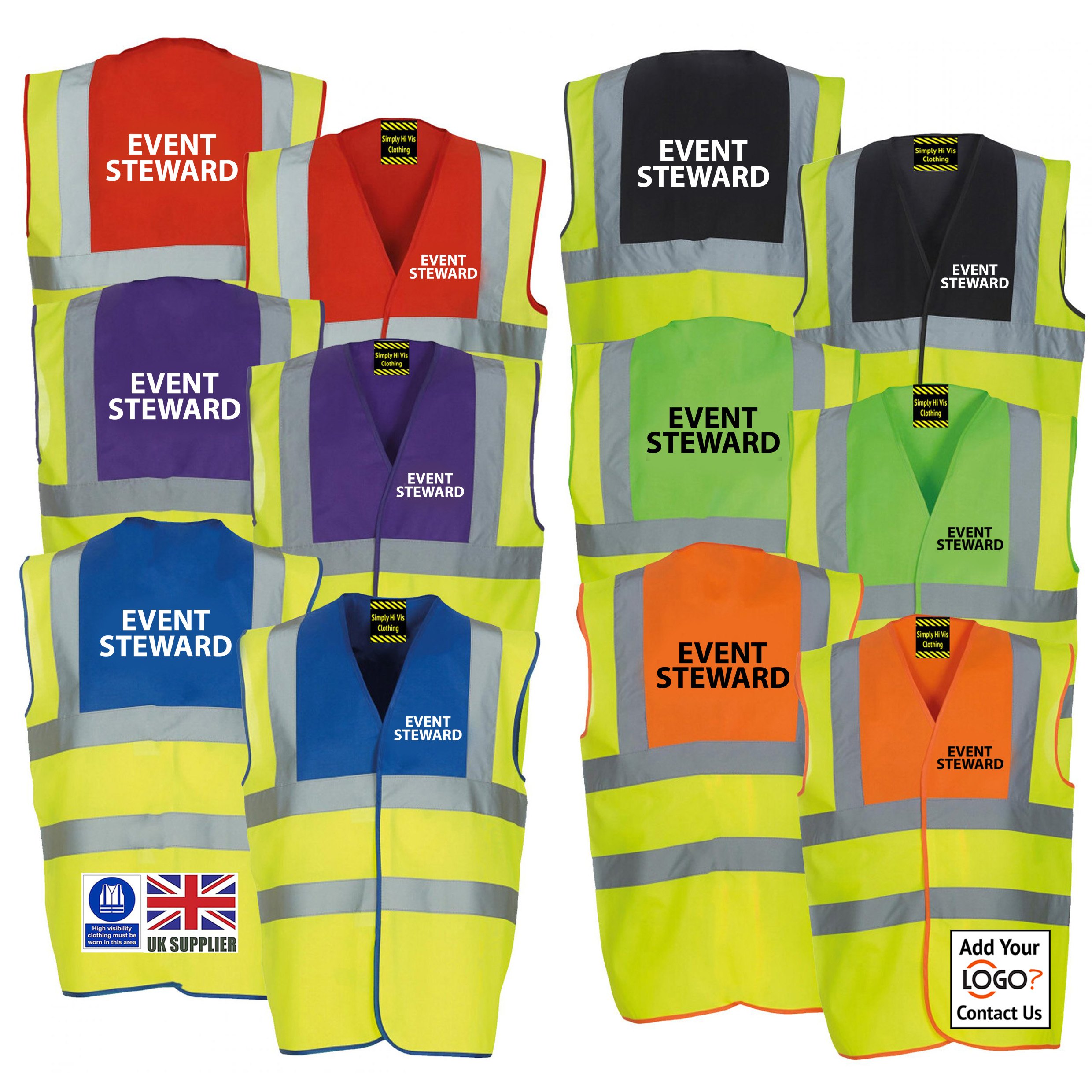 Event Steward Printed Hi Vis Safety Vest/Waistcoat EN ISO 20471