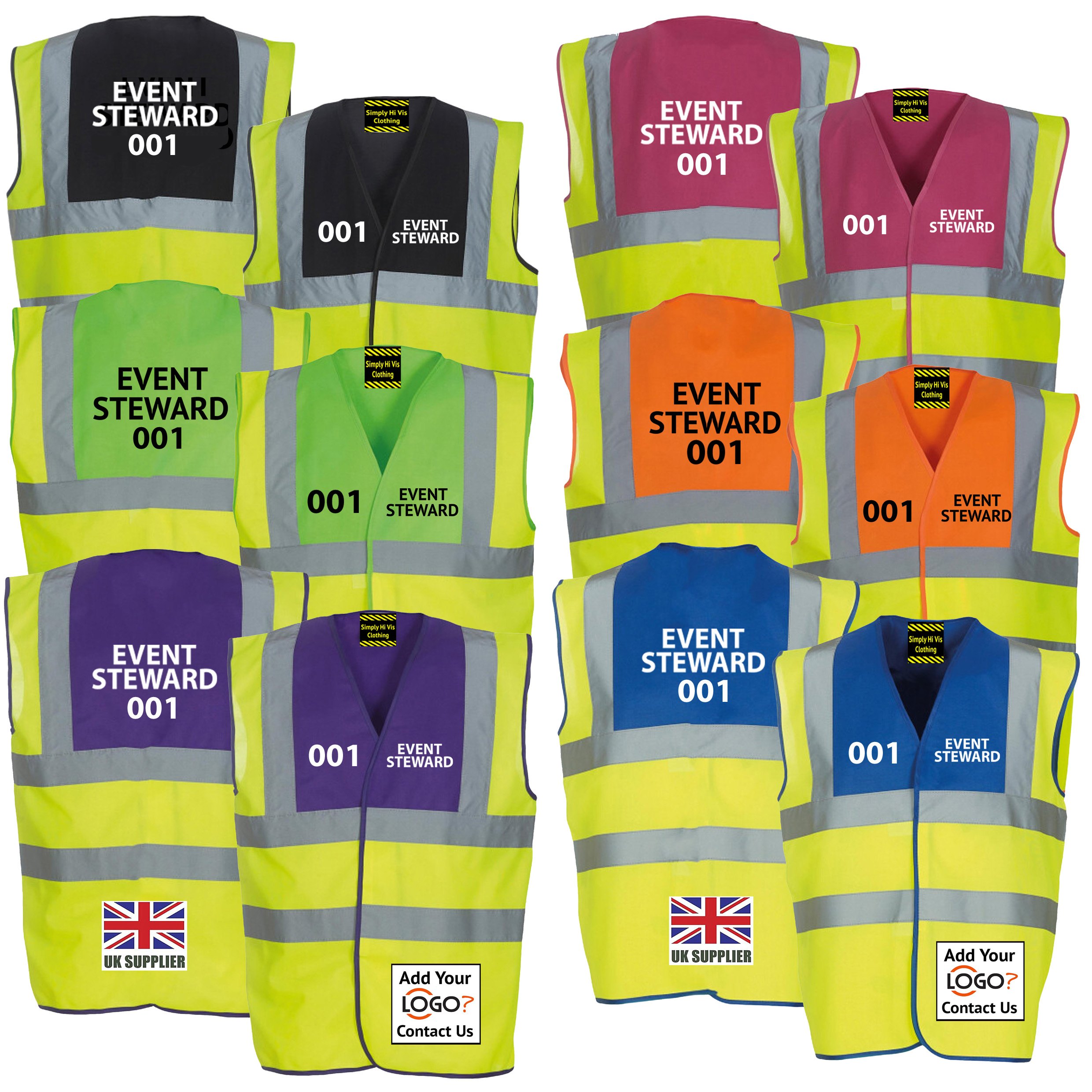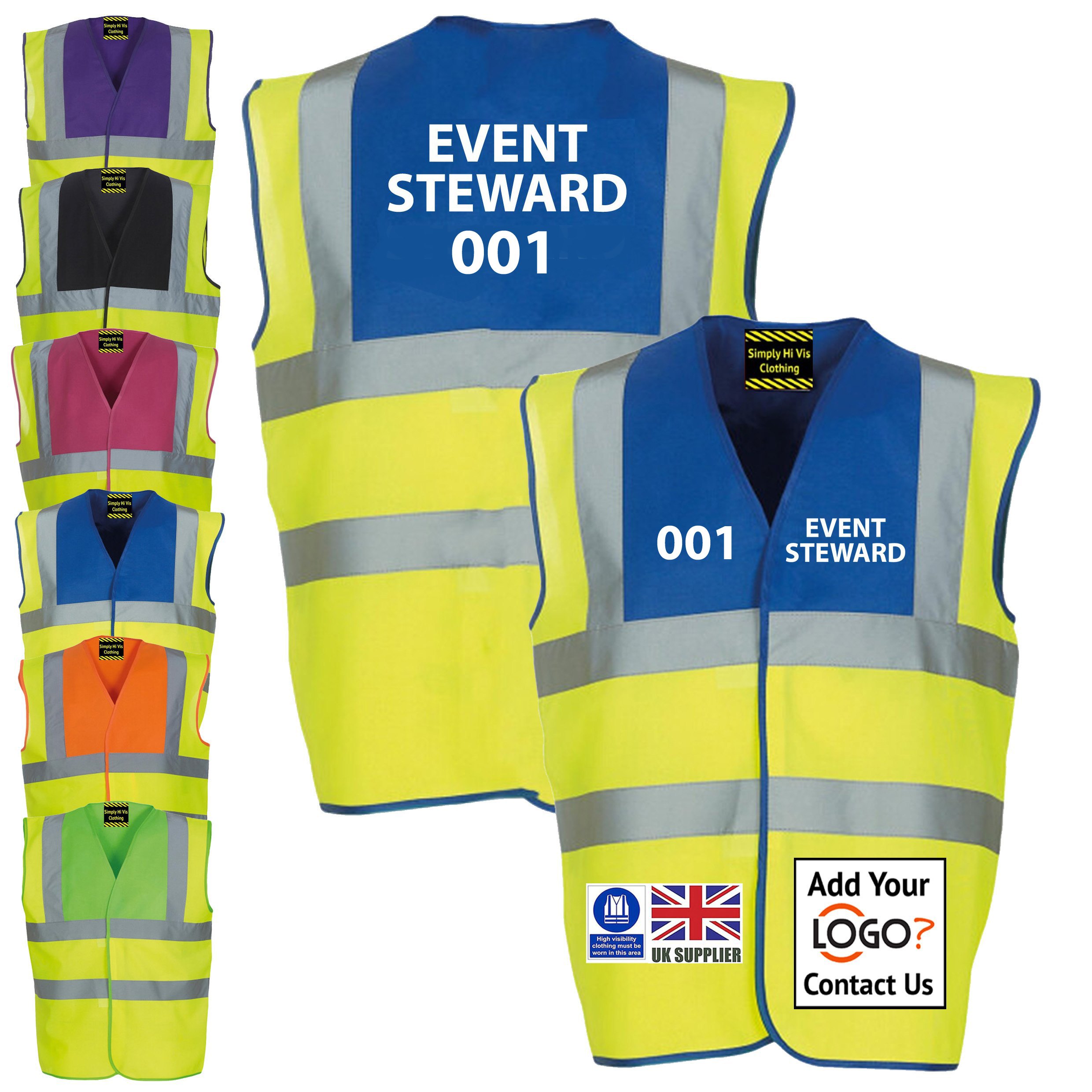 Hi Vis Vest & Printed Event Steward Left Breast & lndividually Numbered Right Breast