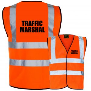 Traffic Marshal Pre Printed Orange Hi Vis Safety Vest / Waistcoat EN ISO 20471